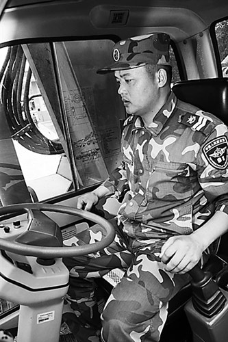 說得容易做來難。王益春學(xué)習(xí)挖掘機(jī)駕駛不久,在一次沼澤地作業(yè)中,駕駛的74式Ⅱ型輪式挖掘機(jī)兩個前輪下陷泥潭,急得滿頭大汗。“掛擋、加油、撐臂……”班長鄧舜之將“鐵爪”往前一撐,前推后拉不足2分鐘,挖掘機(jī)重顯威風(fēng)!捌綍r勤學(xué)苦練,戰(zhàn)時才能適應(yīng)復(fù)雜環(huán)境。”王益春暗下決心,要像班長一樣嫻熟操作“鐵爪”。平時作業(yè)時,爛泥潭、沼澤地等臟活難活,王益春總是積極主動搶著干,休息間隙就虛心請教苦練。晚上,別人看電視,他卻對照教材,悉心研究挖掘機(jī)構(gòu)造原理,把能拆開的零部件拆開看個究竟。他告訴記者,要使平底坑壁直底平,關(guān)鍵就是上下左右兩手的配合操作,“鐵爪”長度、開口大小、鐵臂長短,牢記這些數(shù)據(jù)不但可當(dāng)尺子用,還能提高精準(zhǔn)度。為此,他一有空就把小石頭吊在樹枝上,從不同角度用“鐵爪”去觸摸小石頭,還在操縱桿底座上刻上刻度,根據(jù)土質(zhì)的松軟程度,感悟拉操縱桿的力度。