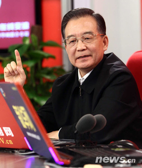 中新網(wǎng)2月27日電(記者 吳博)今日下午,中共中央政治局常委、國(guó)務(wù)院總理溫家寶接受中國(guó)政府網(wǎng)和新華網(wǎng)聯(lián)合專訪,與廣大網(wǎng)友在線交流。這是時(shí)隔一年之后溫家寶再次與網(wǎng)友進(jìn)行在線交流。在兩個(gè)小時(shí)的互動(dòng)過(guò)程中,溫家寶如自己所言,帶著真心、真意、真情與網(wǎng)友交流,并就網(wǎng)友關(guān)注的房?jī)r(jià)、經(jīng)濟(jì)、教育、醫(yī)改等熱點(diǎn)話題一一進(jìn)行了回復(fù)。在訪談最后,溫家寶稱,明年還將再會(huì)網(wǎng)友,并笑言可以勾指相約。