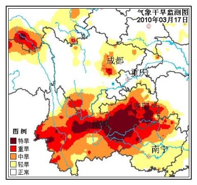 中新網(wǎng)3月17日電 中央氣象臺3月17日繼續(xù)發(fā)布干旱黃色預(yù)警:根據(jù)3月17日監(jiān)測,云南大部、貴州中部和西南部、川西高原南部和廣西西北部等地維持氣象干旱重旱等級。18日,云南西北部、廣西東部有小陣雨,未來三天,其余旱區(qū)無降水。云南大部、貴州大部、川西高原南部、廣西西北部等地的氣象干旱將持續(xù)或發(fā)展。