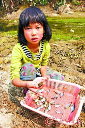 興義市下五屯上納灰村,是珠江上游納灰河地面河道流經(jīng)地區(qū),但20多公里河道早在兩個(gè)多月前就出現(xiàn)多處斷流。村委會(huì)主任陳元勇介紹說:“往年的3月,河水上漲起碼淹沒河床五六米,如今卻是山巖裸露,多處河道出現(xiàn)斷流。”在一個(gè)積水小坑,幾個(gè)小孩正沿著小水坑撈小魚嬉戲。由于干旱嚴(yán)重,本該長(zhǎng)到齊腰高度的玉米也才長(zhǎng)出20多厘米。