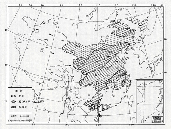 2000年,我國大部地區(qū)降水偏少,出現(xiàn)大范圍干旱。就季節(jié)而言,干旱主要發(fā)生在春、夏季;就地區(qū)而言,北方受旱范圍廣,干旱時間長,旱情重,而南方受旱范圍小,干旱時間短,旱情也較輕。據(jù)有關(guān)部門統(tǒng)計,全國累計受旱面積4054萬公頃,成災(zāi)面積2678萬公頃,與1971年以來-的平均值相比,均顯著偏多,屬干旱嚴重年份。其中受旱面積較大或旱情較重的有河北、山西、內(nèi)蒙古、山東、陜西、甘肅、寧夏、遼寧、吉林、黑龍江、湖北、安徽、江西等省區(qū)。