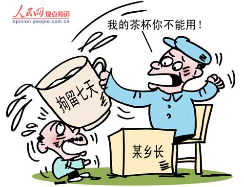 俗話說,民不與官斗。在該鄉(xiāng)長眼里,一點也不假。在他心目里,水杯就是一種象征,象征著權(quán)力高高在,上不容侵犯。老農(nóng)不識抬舉隨意想動用自己的茶杯,這還了得?而與自己發(fā)生爭執(zhí)更不得了,小小百姓竟然敢與官員作對,讓鄉(xiāng)長丟了面子,威信受損,不給老農(nóng)一點顏色,還能算一鄉(xiāng)之長嗎?于是,假公濟(jì)私,找來公安,火速辦案,甚至給老農(nóng)扣上毆打國家工作人員的罪名,當(dāng)天就將老農(nóng)送進(jìn)拘留所,既解恨,又樹威信,真的佩服鄉(xiāng)長的魄力與能力。可他的民主與法制意識又哪里去了?