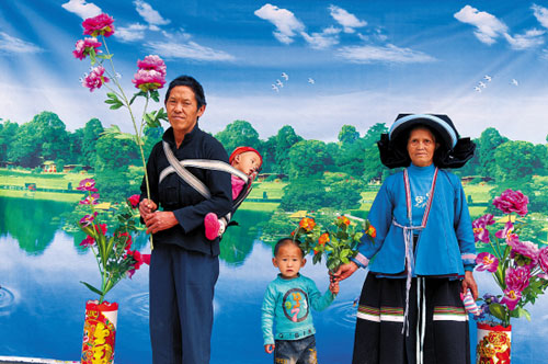 老人說他叫楊華爸,他在廣東打工的兒子想念家中的兩個(gè)孩子,昨天恰逢集市,楊華爸與老伴帶著兩個(gè)孫子到常么照相館照相,以便寄給兒子。