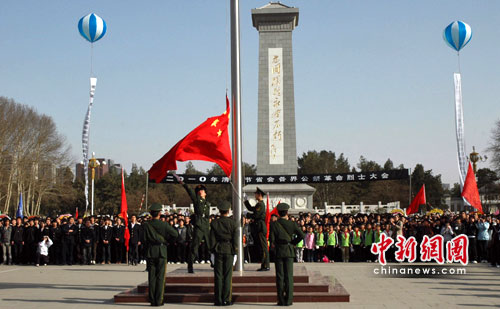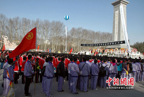 中新網(wǎng)石家莊4月2日電(牛琳 田國祥)2日,2010年清明節(jié)省會(huì)各界公祭革命烈士大會(huì)在華北軍區(qū)烈士陵園舉行。來自部隊(duì)、學(xué)校、醫(yī)院等各界人士約5萬人參加了公祭儀式。