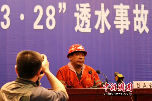 山西焦煤集團汾西礦業(yè)救援大隊的大隊長陳永生參與了對第一批九名礦工的救援的工作。他透露,救援隊伍在3月28日透水事故發(fā)生的當天傍晚6時就趕到現(xiàn)場,到現(xiàn)在都沒有洗過腳和臉。