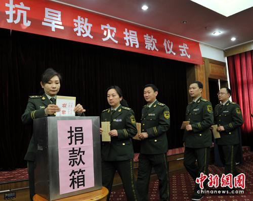 在今天舉行的現(xiàn)場(chǎng)捐贈(zèng)儀式中,貴州消防總隊(duì)機(jī)關(guān)全體官兵現(xiàn)場(chǎng)捐款3.7萬(wàn)余元。據(jù)統(tǒng)計(jì),自抗旱以來,貴州各地消防官兵先后捐款捐物35萬(wàn)余元,抗旱送水?dāng)?shù)56320噸,澆灌農(nóng)作物1000余畝,惠及群眾近300萬(wàn)人。完