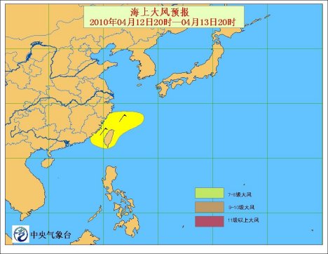 中新網(wǎng)4月12日電 中央氣象臺(tái)12日18時(shí)繼續(xù)發(fā)布海上大風(fēng)預(yù)報(bào):4月12日下午2時(shí),渤海、黃海北部和和中部海域、東海北部海域出現(xiàn)了5~6級(jí)、陣風(fēng)7~8級(jí)的西北風(fēng);東海南部偏東海域、臺(tái)灣以東洋面出現(xiàn)了5~7級(jí)西南風(fēng);南海西北部海域、北部灣出現(xiàn)了5~6級(jí)偏南風(fēng)。黃海大部海域、東海西部海域、臺(tái)灣海峽、南海西北部海域的能見(jiàn)度不足10公里。其他海域天氣海況條件較好。