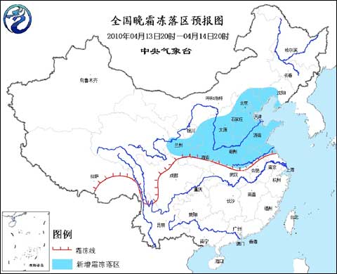 中新網(wǎng)4月13日電 中央氣象臺今日18時繼續(xù)發(fā)布霜凍藍色預警: