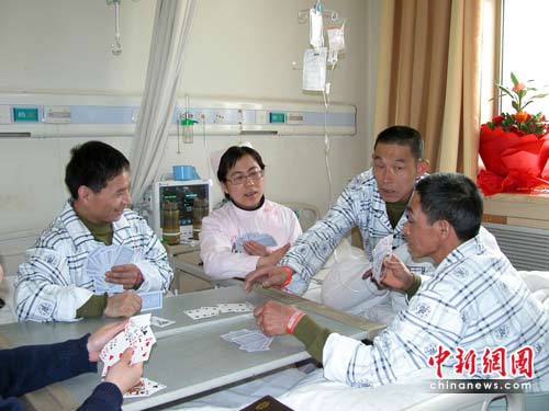 今天是王家?guī)X獲救礦工轉(zhuǎn)診太原的第八天,礦工們下床活動的時(shí)間在逐漸增多。