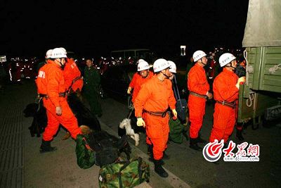 4月14日22時(shí)30分,山東消防總隊(duì)接到公安部消防局趕赴青海玉樹(shù)開(kāi)展地震救援的命令后,已經(jīng)集結(jié)待命的我省第一批地震救援消防官兵立即趕赴機(jī)場(chǎng),于15日凌晨0時(shí)40分乘坐山東航空公司SC901次航班從濟(jì)南遙墻機(jī)場(chǎng)起飛,在3時(shí)15分到達(dá)青海西寧機(jī)場(chǎng)。