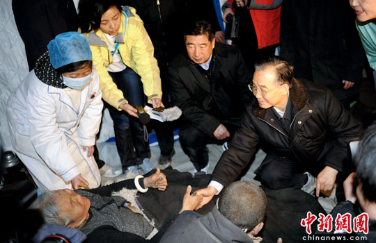 中新網(wǎng)4月15日電 據(jù)中央電視臺報道,正在玉樹災區(qū)視察災情的中共中央政治局常委、國務院總理溫家寶強調,救人是目前最緊迫的問題,一個人也不要放棄。