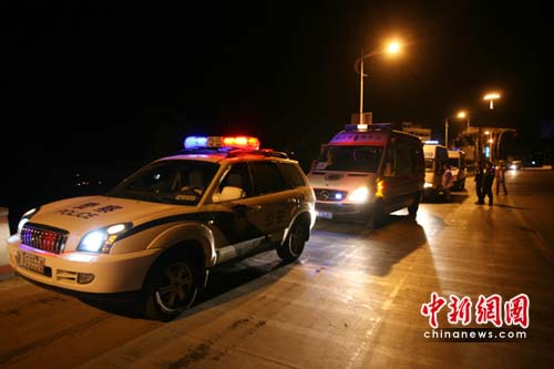 4月15日21:10左右,車隊(duì)在翻越5000多米的海子山時(shí),四川省人民醫(yī)院一臺(tái)奔馳救護(hù)車發(fā)生爆胎,經(jīng)過(guò)40多分鐘的緊急搶修,故障排除。眼看就要抵達(dá)石渠縣城了,車隊(duì)中再次傳來(lái)一聲“砰”的響聲,車隊(duì)中又有車胎發(fā)生爆胎。車隊(duì)不得不停下。