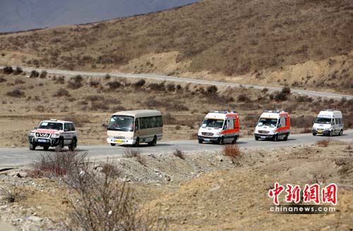 4月16日凌晨4:30分左右,車隊(duì)終于抵達(dá)四川最遠(yuǎn)的縣城石渠縣,休整半小時(shí)后,車隊(duì)出發(fā)離開(kāi)四川趕往青海省玉樹(shù)。經(jīng)過(guò)1200余公里,40小時(shí)的長(zhǎng)途跋涉,醫(yī)療救援車隊(duì)終于在16日早晨7時(shí)左右平安抵達(dá)青海省玉樹(shù)地震重災(zāi)區(qū)。