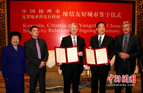 馬可•波羅是揚(yáng)州與科爾丘拉交往的紐帶,在揚(yáng)州老城區(qū)的天寧寺內(nèi),有一座中國(guó)惟一的馬可波羅紀(jì)念館。雙方交往始于2006年, 2009年兩市共同簽訂了《中國(guó)揚(yáng)州市與克羅地亞科爾丘拉市建立友好交往城市關(guān)系備忘錄》。近四年來(lái),雙方交往日趨頻繁,兩市領(lǐng)導(dǎo)互訪,交往渠道不斷增多,相互間了解和友誼逐步加深。