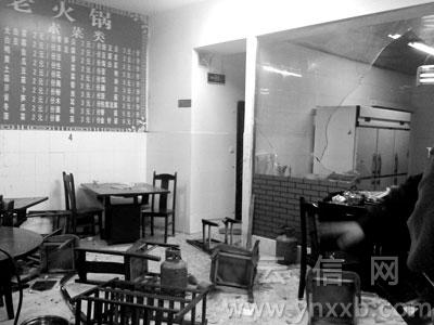 “砸!”一聲“令”下,幾十人拿著砍刀和鋼管,在火鍋店就開始到處亂砍!班枥锱纠病被疱伒甑牟AТ胺鬯樾缘袈,啤酒瓶、餐具接二連三被砸碎,正在沸騰的火鍋被掀翻在地,墻上、地上灑滿紅油。頓時(shí)店里一片混亂,客人、服務(wù)員紛紛沖進(jìn)廚房躲避。