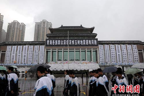 按照青海省政府昨日公告,今日上午10時(shí)整起,青海全省人民默哀三分鐘,屆時(shí)汽車、火車、輪船鳴笛,防空警報(bào)鳴響。西寧的悼念活動(dòng)在新寧廣場(chǎng)舉行,玉樹的悼念活動(dòng)在結(jié)古鎮(zhèn)舉行,其它地方舉辦規(guī)模適中的集中悼念儀式。(完)