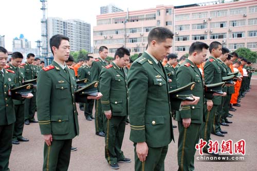 重慶消防官兵表示,在此次默哀儀式上,他們沉痛悼念玉樹地震遇難同胞。目前,由重慶消防官兵組成的應急救援力量仍在集結(jié)中,他們將隨時待命馳援災區(qū)。完