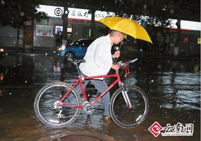 黑壓壓的烏云籠罩了昆明兩個(gè)小時(shí)之后,昨晚8點(diǎn),一場(chǎng)從去年9月以來(lái)最大的降雨光臨昆明。當(dāng)豆大的雨點(diǎn)落在昆明家家戶戶的窗戶上時(shí),市民都興奮了。大家的感覺(jué)沒(méi)有錯(cuò),昨天晚上的那場(chǎng)降雨確實(shí)是干旱以來(lái)的最大一場(chǎng)。雖然降雨只持續(xù)了約一個(gè)小時(shí),但是電閃雷鳴間,這場(chǎng)雨已經(jīng)完全澆濕了昆明城。