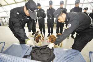 從昨天(23日)起,一隊隊全副武裝的特勤隊員開始在南京地鐵一號線車廂內(nèi)巡邏,他們個個身強(qiáng)體壯,受過專業(yè)訓(xùn)練。更值得一提的是,在這支隊伍中還有四只活潑可愛的“史賓格”犬。這是南京警方新成立的軌道交通乘警大隊,從現(xiàn)在開始,這支乘警大隊將擔(dān)負(fù)起南京地鐵全線的巡邏執(zhí)勤任務(wù),保障市民的出行安全。