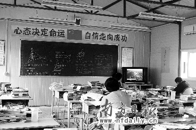 在記者采訪北川中學(xué)的這個(gè)周末,幾乎每一個(gè)教室里都有學(xué)生在自習(xí),少數(shù)班級(jí)有老師輔導(dǎo)或?qū)W生干部在值日,但更多的則是學(xué)生在自覺(jué)地學(xué)習(xí)。