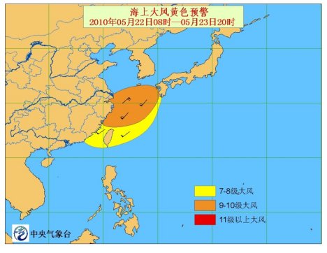 中新網(wǎng)5月22日電 中央氣象臺5月22日6時發(fā)布海上大風黃色預警:受入海氣旋影響,22日08到23日20時,東海大部海域?qū)⒂?級大風,陣風可達10~11級。