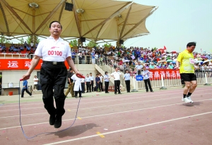 “上次跳繩,那還是40多年前的事了!”別著“00100”號(hào)碼牌的傅政華,一臉笑容。在接過裁判遞過來的跳繩后,試跳了幾下,“感覺還行”。