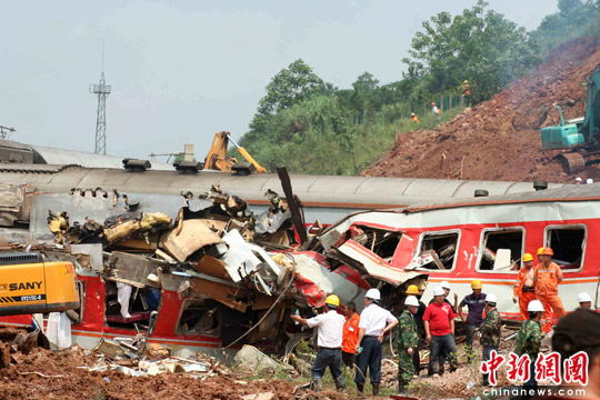 中新網(wǎng)東鄉(xiāng)5月23日電(艾永全 何柳斌 劉占昆)23日下午14時,距離滬昆鐵路客運列車脫線事發(fā)已經(jīng)12小時,武警、消防、醫(yī)護(hù)、交警、特警仍在事故現(xiàn)場緊急救援。