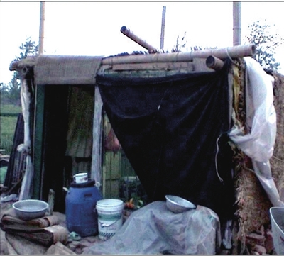 在廣平縣城郊的焦莊村,有一個(gè)用竹子、草簾和塑料布搭成的不足10平方米的窩棚,女主人名叫李運(yùn)得,她與丈夫擠住在這里,孩子借住在別人家。