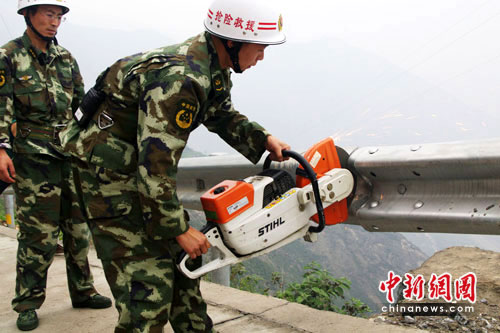 據(jù)汶川縣公路局局長(zhǎng)王永新介紹,排險(xiǎn)工作結(jié)束后,汶川縣公路部門將爭(zhēng)取用6個(gè)小時(shí)左右時(shí)間搶通出一條臨時(shí)過(guò)往便道。目前,汶川縣公路部門已出動(dòng)30名路政、道班人員和4輛裝載車原地待命,只等山體排險(xiǎn)工作結(jié)束,立刻開展垮塌路段的土石清理,全力搶通道路。