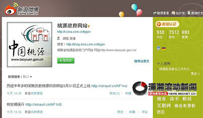 5月30日,記者通過國內(nèi)幾家知名微博平臺(tái)管理員查詢得知,湖南省內(nèi)地方政府開通官方微博的只有桃源縣政府。