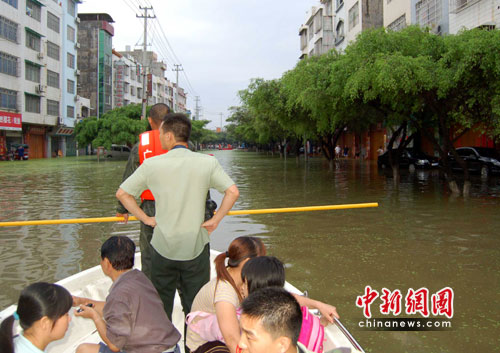 記者在來賓市實驗中學看到,該校已成為一片湖泊。水深處約有1.6米,已經(jīng)淹過成年男子肩膀。水中七零八落飄散著住戶的生活用品,一樓居民已經(jīng)全部撤離。消防官兵自早上8時許開始對被困師生進行救援,直至下午5時,該校1100名被困師生及家屬全部撤至安全地帶。學校內(nèi)停電并且無法出行,影響了不少居民的正常生活。周邊幾家商鋪圍擋自家門口防止積水流進店內(nèi),用各種器皿向外倒水。