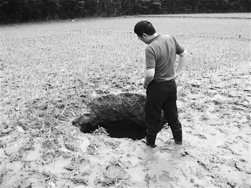 3天后,崇州市懷遠鎮(zhèn)村民周先生也發(fā)現了一個“天坑”。周先生說,他路過鄰居家一塊秧田時,秧田里突然噴水,勢如泉涌。水停后,原本好好的秧田竟出現一個1米多深的“天坑”。