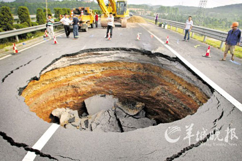 近日,國內(nèi)各地屢現(xiàn)“天坑”。而地球的那一端似乎也不平靜,南美危地馬拉出現(xiàn)了一個(gè)直徑30米的巨大“天坑”。而出現(xiàn)此坑不久后,這里就發(fā)生了火山噴發(fā)。“天坑”的出現(xiàn),是否就是某種災(zāi)難的預(yù)兆?羊城晚報(bào)記者專訪了中山大學(xué)張珂教授和華中師范大學(xué)揭毅教授,他們認(rèn)為,此次頻現(xiàn)的“天坑”其實(shí)是地陷,與地震關(guān)聯(lián)不大,“人禍”要大于“天災(zāi)”。