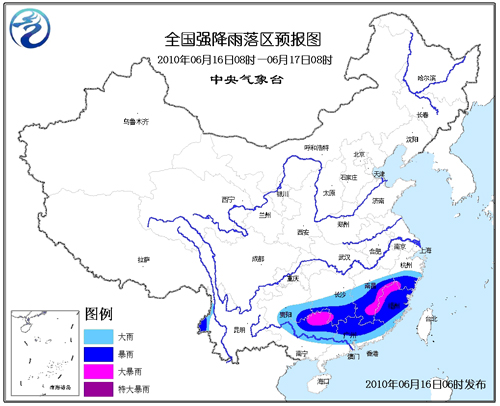 中央氣象臺今晨06時繼續(xù)發(fā)布暴雨黃色預(yù)警:預(yù)計,6月16日08時到6月17日08時,貴州南部、湖南南部、江西中南部、浙江南部、福建、廣東大部、廣西中北部、云南西部等地有大到暴雨。