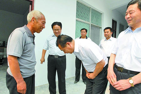 6月21日,省高院院長張立勇率領(lǐng)省高院和商丘市中院兩級(jí)法院的領(lǐng)導(dǎo)班子來到柘城縣農(nóng)民趙作海的新家。針對因法院判錯(cuò)案給趙作海一家?guī)淼睦Ь,張立勇院長向趙作海鞠躬致歉。面對高院院長,趙作海感到極為意外,說:“我對現(xiàn)在的生活很滿意,現(xiàn)在是滿天的云彩都散了……”當(dāng)天上午,兩級(jí)法院還就如何避免再次發(fā)生類似案件專門進(jìn)行了反思。