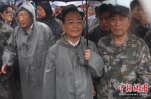 中新網(wǎng)撫州6月24日電(張見悅 何柳斌 劉占昆)24日,中共中央政治局常委、國務(wù)院總理溫家寶赴江西指導防汛抗災(zāi)工作。當日上午,溫家寶總理冒雨深入重災(zāi)區(qū)撫州羅針鎮(zhèn),察看汛情、災(zāi)情,看望受災(zāi)群眾,慰問奮戰(zhàn)在抗洪搶險一線的解放軍、武警、公安消防官兵。