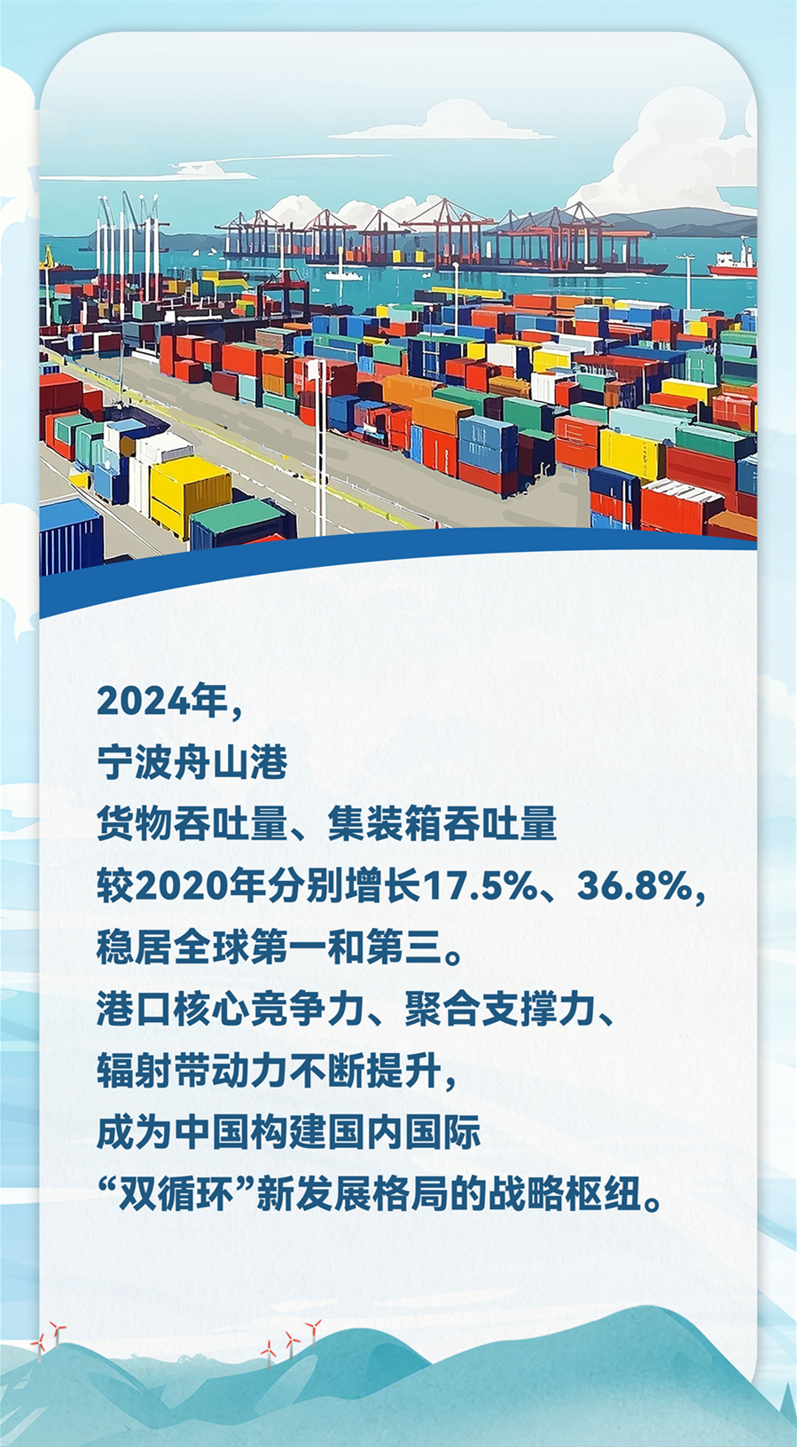 雨中的穿山港區(qū)碼頭,整齊的集裝箱連片堆放,巨型橋吊林立,一眼望不到邊,作業(yè)現(xiàn)場緊張忙碌而又井然有序。