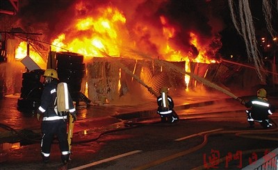 事發(fā)后,消防員接報趕至開動多支喉筆,從四面八方向火場噴灑化學(xué)泡沫及射水灌救,花一個半小時才能將大火完全撲熄,無人受傷,F(xiàn)場為華南工業(yè)大廈旁的露天廢舊輪胎回收場,該回收場早前搬遷至氹仔孫逸仙博士大馬路一地盤,但舊場目前仍存放大批輪胎。