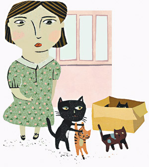我趕緊溜回臥室,裝作若無(wú)其事。想起四十年前,父親就告訴我,不可以偷看小貓,一旦貓咪育兒室被發(fā)現(xiàn),貓媽媽就會(huì)叼起幼仔遷移。在這又濕又冷的夜晚,我怎忍它們母子去流浪?