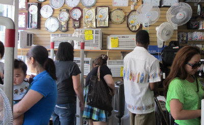 位于法拉盛羅斯福大道榕欣電器城負責人陳先生表示,空調(diào)和風扇的熱銷從5月底就已經(jīng)開始,近期店內(nèi)的風扇已經(jīng)創(chuàng)下一天銷售百臺的紀錄,而空調(diào)一天賣個幾十臺也不成問題。陳先生指出,今夏屬于分段熱的天氣,雖然尚未出現(xiàn)前年連續(xù)幾天達到百度以上的高溫,但仍舊為店中帶來不少生意,陳先生笑說:“這樣也好,生意不錯但又不會忙不過來。”