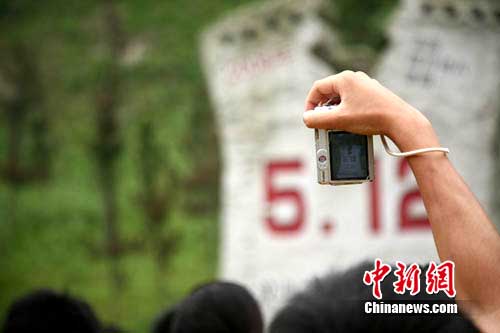 當(dāng)車隊穿過龍溪隧道,建設(shè)得如火如荼的映秀新鎮(zhèn)便出現(xiàn)在同學(xué)們眼前。在眾多新建房屋中,幾棟嚴(yán)重傾斜垮塌的建筑引起了大家的關(guān)注。該處是映秀鎮(zhèn)漩口中學(xué),地震中該校六層樓高的教學(xué)樓下陷垮塌變?yōu)楝F(xiàn)在所看到的三層建筑,大部分學(xué)生不幸遇難。聽著工作人員的介紹,不少女孩流下了眼淚。