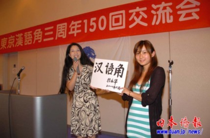 交流會(huì)上展示了中國駐日大使程永華揮毫題寫的“漢語角”3個(gè)大字,顯示了中國駐日大使館對中日民間交流的重視和對舉辦漢語角的支持。
