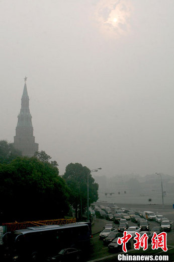 據(jù)當(dāng)?shù)丨h(huán)保單位檢測,近日莫斯科空氣污染的程度已經(jīng)超出正常值的3倍,處于嚴重污染狀態(tài)。衛(wèi)生部門官員對民眾發(fā)出了健康警示,居民外出要戴口罩,在室內(nèi)要掛濕毛巾,以粘住煙霧中的粉塵顆粒并凝結(jié)煙流。