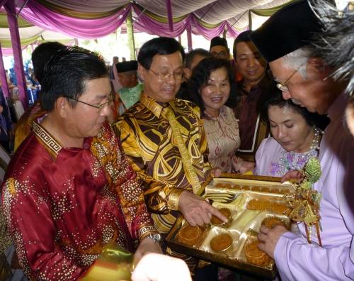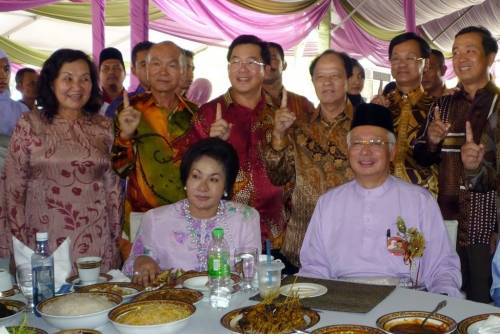 中新網(wǎng)9月19日電 據(jù)馬來西亞《星洲日報》報道,馬來西亞首相納吉18日回到選區(qū)北根舉辦開齋節(jié)門戶開放活動,華總會長方天興率領彭亨華人社團聯(lián)合會及彭亨中華工商會眾領袖一起出席,并贈送月餅予首相,象征月圓、人圓、全民團結(jié)!