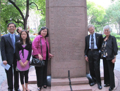 中新網(wǎng)9月29日電 據(jù)美國《世界日報》報道,2009年美國11位諾貝爾獎得主的名字28日新添在紐約曼哈頓上西城羅斯福公園(Theodore Roosevelt Park)內(nèi)的諾貝爾紀念碑(Nobel Monument)上,其中包括華裔物理獎得主高錕(Charles Kuen Kao)的英文名字C.K.Kao。高錕的三位家人出席了新聞發(fā)布會,代高錕分享這一殊榮。