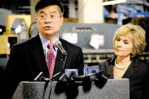 主流政治人物走入華人社區(qū)拉票的同時,更不忘搬出華裔政要站臺。紐約州競爭激烈的檢察長之爭,主參選人就各有華裔擁躉。競選連任的聯(lián)邦參議員鮑克塞日前更請來華裔商務(wù)部長駱家輝站臺助選。無論登廣告宣傳政見,抑或深入華人社區(qū),主流政客看重的無疑是華裔日益增強的選票實力。(綜欣)