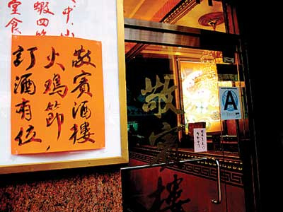 華埠東百老匯的敬賓酒樓雖然近日才貼出火雞節(jié)宴席預(yù)訂告示,但業(yè)者介紹預(yù)訂活動早在一年前便開始,宴席也已被訂走大半。