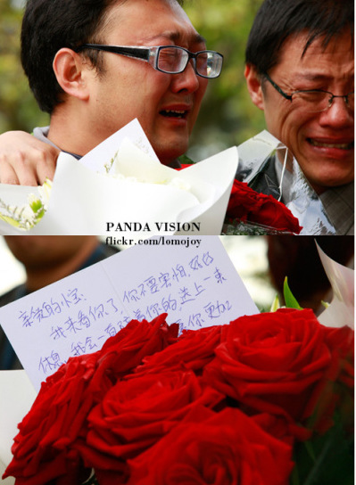 在現(xiàn)場(chǎng)用相機(jī)記錄這一場(chǎng)面的華人攝影師王世瑞在電話(huà)中告訴中新社記者,“我是第一次拍攝這樣的照片,失蹤留學(xué)生的家屬們拿著親友的相片,哽咽不已的講述故人往事,我的眼淚也止不住的流淌,拍照的手都在發(fā)抖!