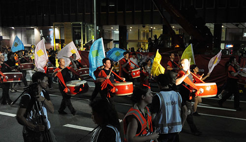中新網(wǎng)2月23日電 當(dāng)?shù)貢r(shí)間2月21日晚,華燈初上,澳大利亞悉尼市中心一片歡騰。這是悉尼為慶祝中國春節(jié)而舉辦的全球最大新年花車大巡游。巡游隊(duì)伍中“文化中國•四海同春”紅鼓彩旗方隊(duì)大放異彩。