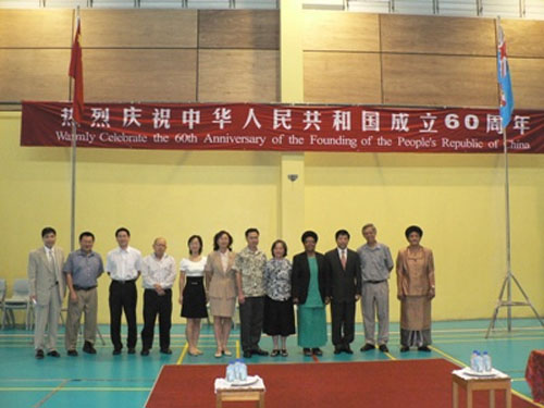 中新網(wǎng)9月24日電 據(jù)中國(guó)駐斐濟(jì)大使館消息,9月18日,由在斐華人創(chuàng)辦和管理的斐濟(jì)名!菹蓪W(xué)校舉辦慶祝中華人民共和國(guó)成立60周年升旗儀式和文藝活動(dòng),韓志強(qiáng)大使應(yīng)邀出席并講話。斐華人教育協(xié)會(huì)會(huì)長(zhǎng)余倩莊、逸仙學(xué)校中小學(xué)師生代表700余人參加!